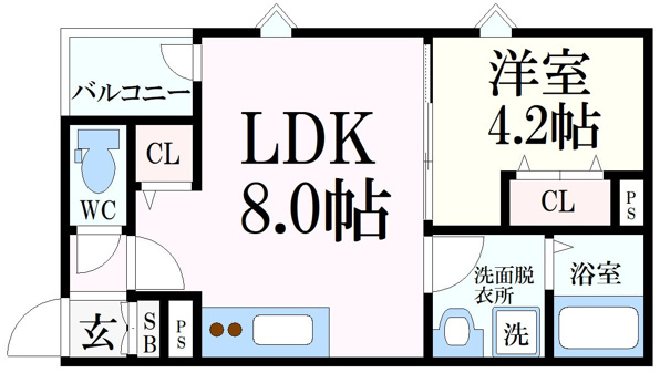 1LDK / LDK 8.0帖/洋室 4.2帖 |